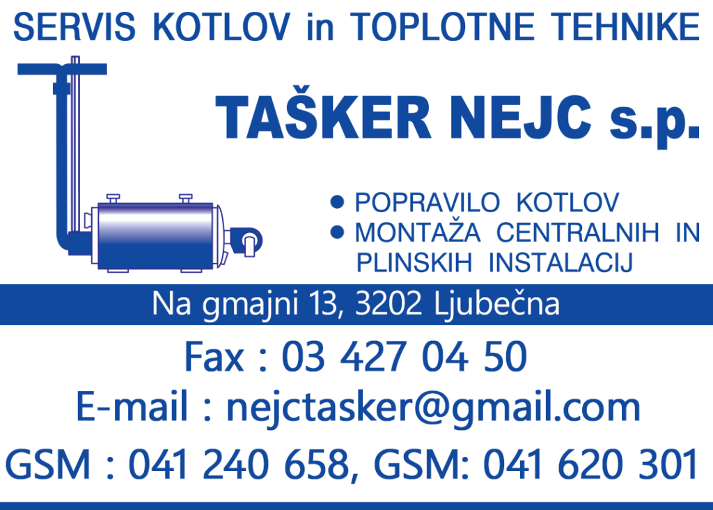 Servis kotlov in toplotne tehnike NEJC TAŠKER s.p.,Na gmajni 13, 3202 Ljubečna